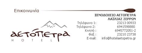 Τηλ.: 23213 00933, Fax. 23210 23738 e-mail : Info@aetopetra.gr